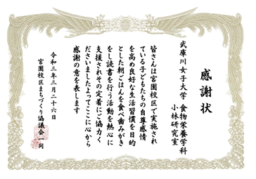 宮園校区まちづくり協議会より感謝状を授与されました:栄養教育論研究室