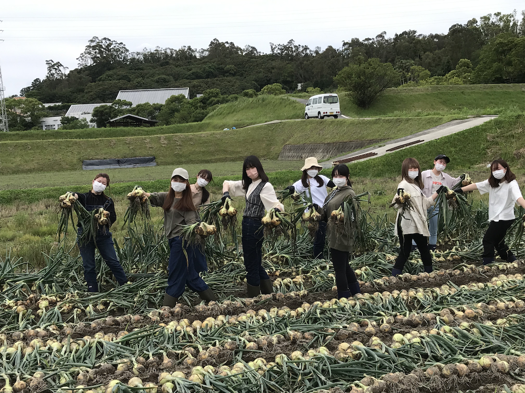 将来の食産業界をリードする人材育成を目指す「食創造科学科」では、食の現場との連携を重視し、2年生までに関西地区の企業・団体に協力して頂き、様々な生産現場の見学実習を実施しています。2年生は5月にJA全農兵庫・兵庫県南淡路農業改良普及センター・美菜恋来屋さまのご協力を得て、「淡路島たまねぎの全て」について学んできました。初めてのタマネギ収穫の実体験でした。今後も見学実習やインターンシップなど実践的な学びを通した学生の成長が楽しみです。